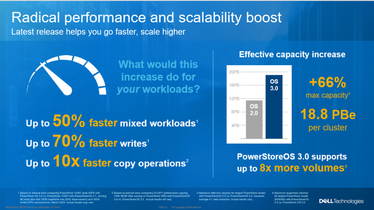 戴爾PowerStore是公司曆史上發展快的新架構,將提供高達50%的混合工作負載性能提升,和高達66%的容量提升。